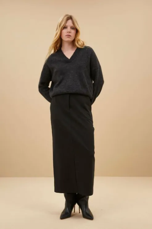 Style intemporel et prêt pour l’hiver ! La jupe Noora présente des détails classiques et féminins. La jupe maxi a une taille haute, une coupe droite, deux poches passepoilées et une fermeture à crochet etœillet. La fente à l’arrière ajoute une touche élégante. Associez-la avec un pull pour un look indispensable !